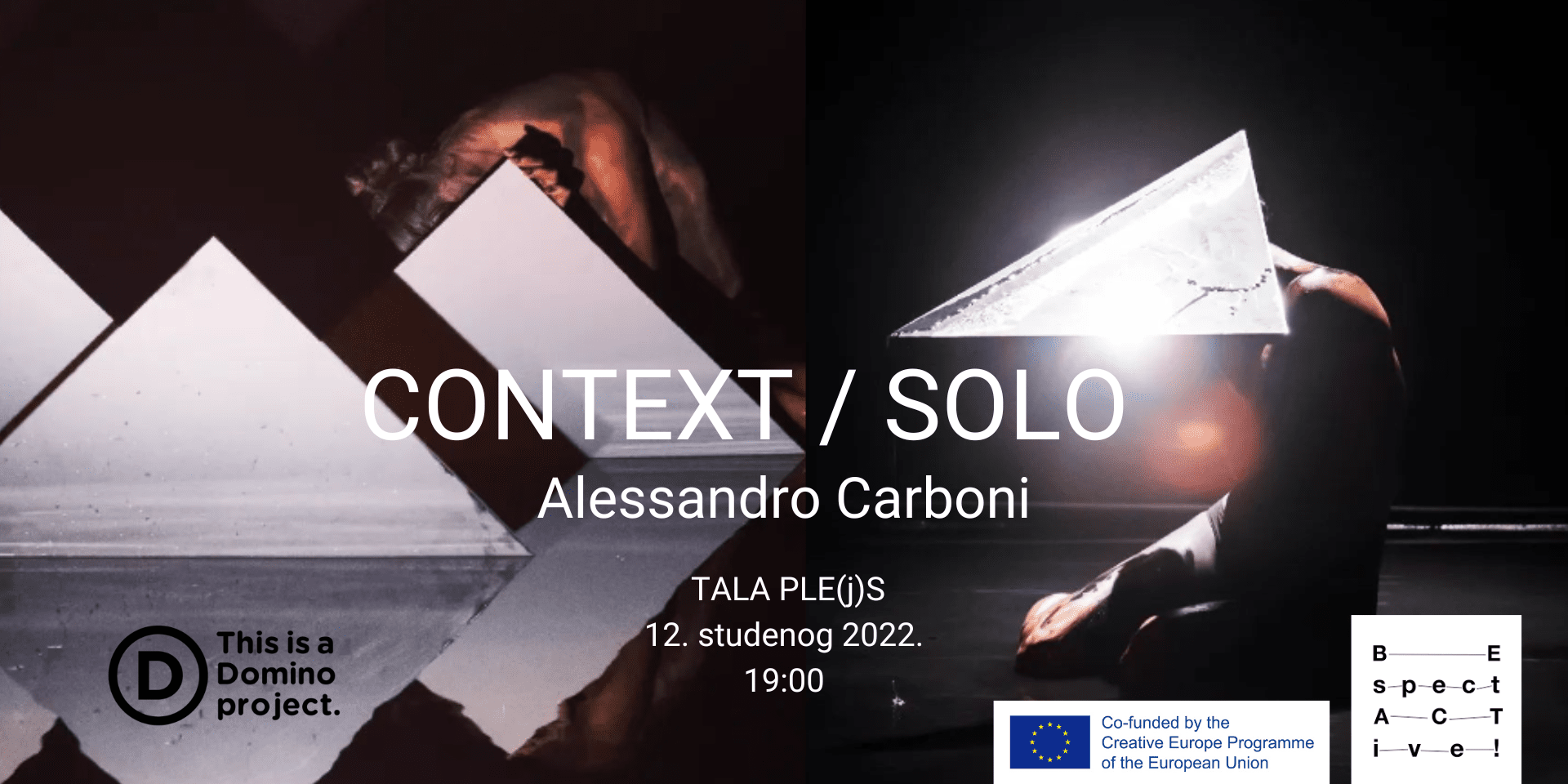 U okviru EU projekta Be SpectACTive!, dovodimo talijanskog umjetnika Alessandra Carbonia, koji će 12. studenog u Plesnom Centru TALA, predstaviti performans Context Solo i održati radionicu vizualnog performansa.